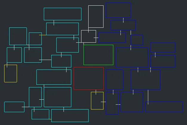 - Yellow - Optional corridor added between two rooms in the same subtree.